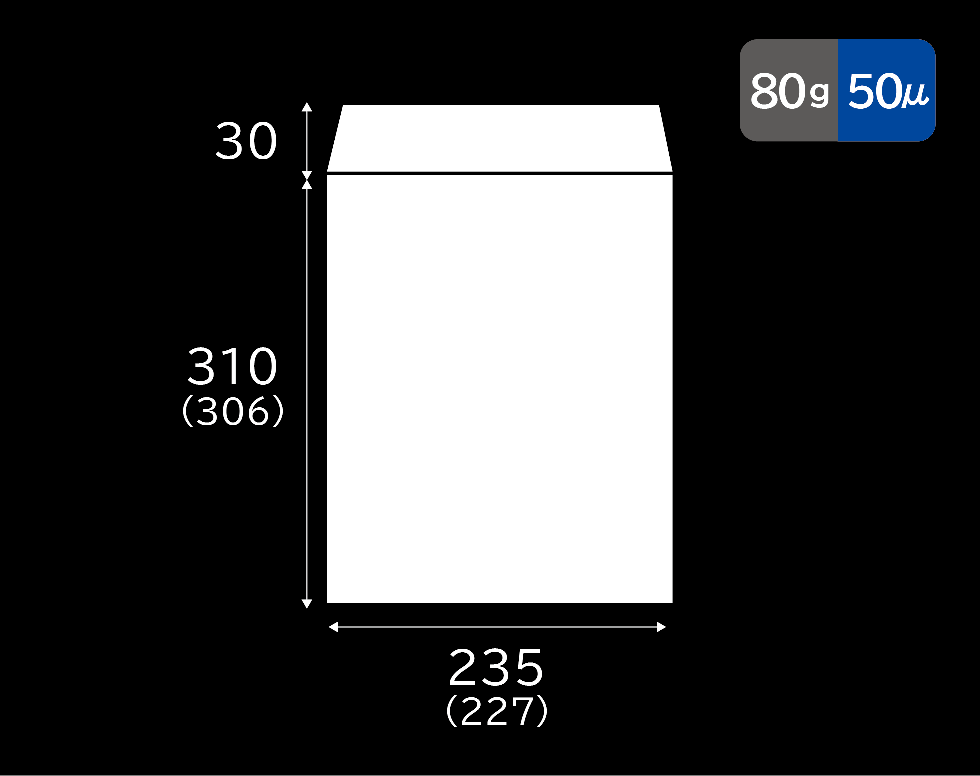 | A4-80g/50μ | A0868 | A4-PFEC501T(PF-A4) | 角形A4号(A4) | 紙(白)/OP | 80/50μ | 235(227) | 310(306) | 30 | |