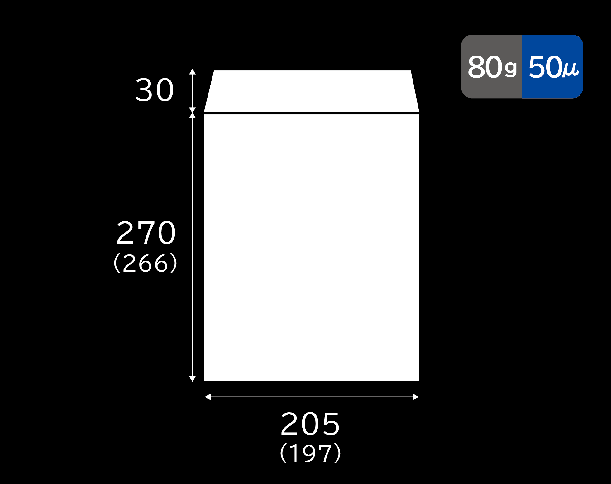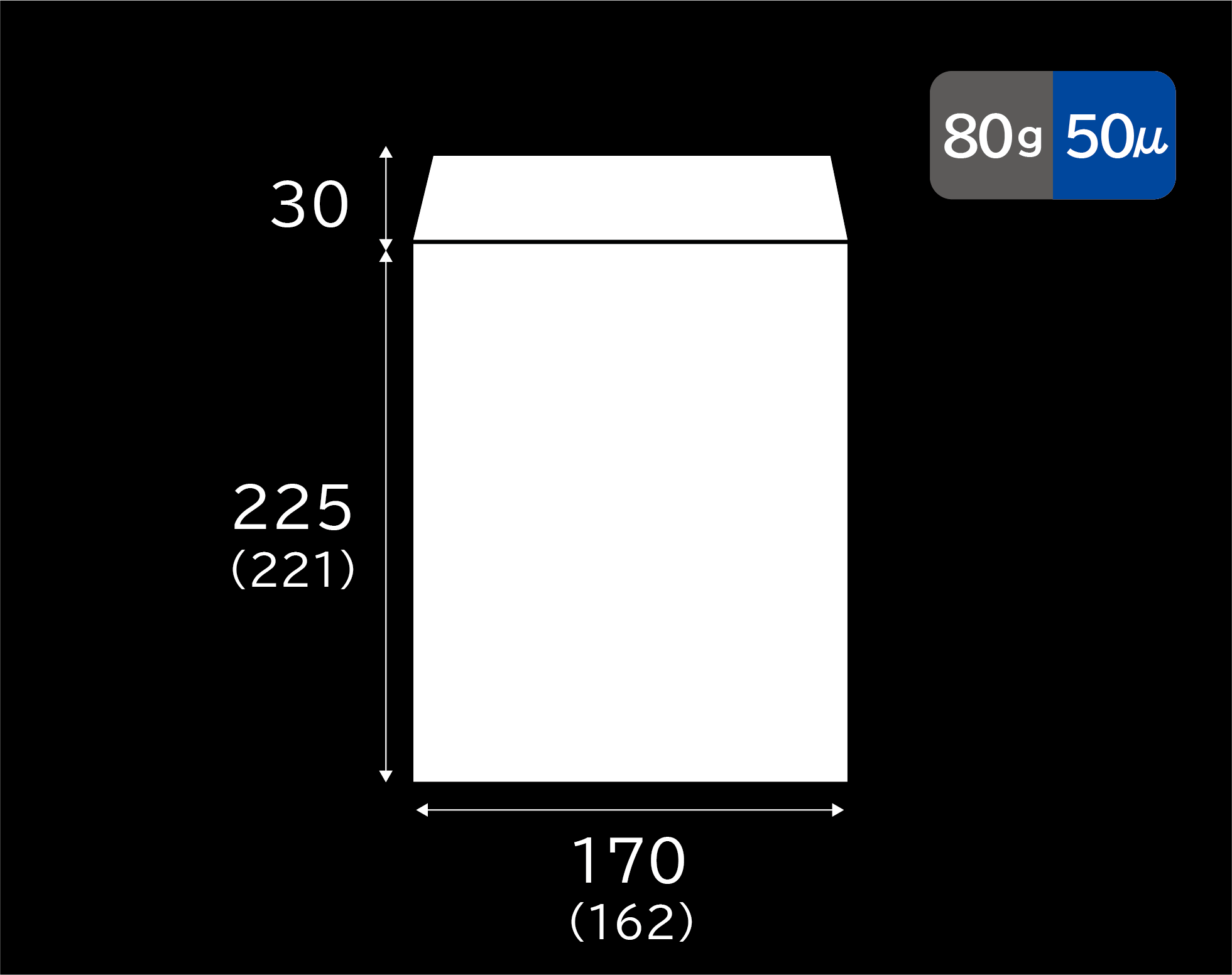 | A5-80g/50μ | A0456 | A5-PFEC501T | 角形6号(A5) | 紙(白)/OP | 80/50μ | 170(162) | 225(221) | 30 | |