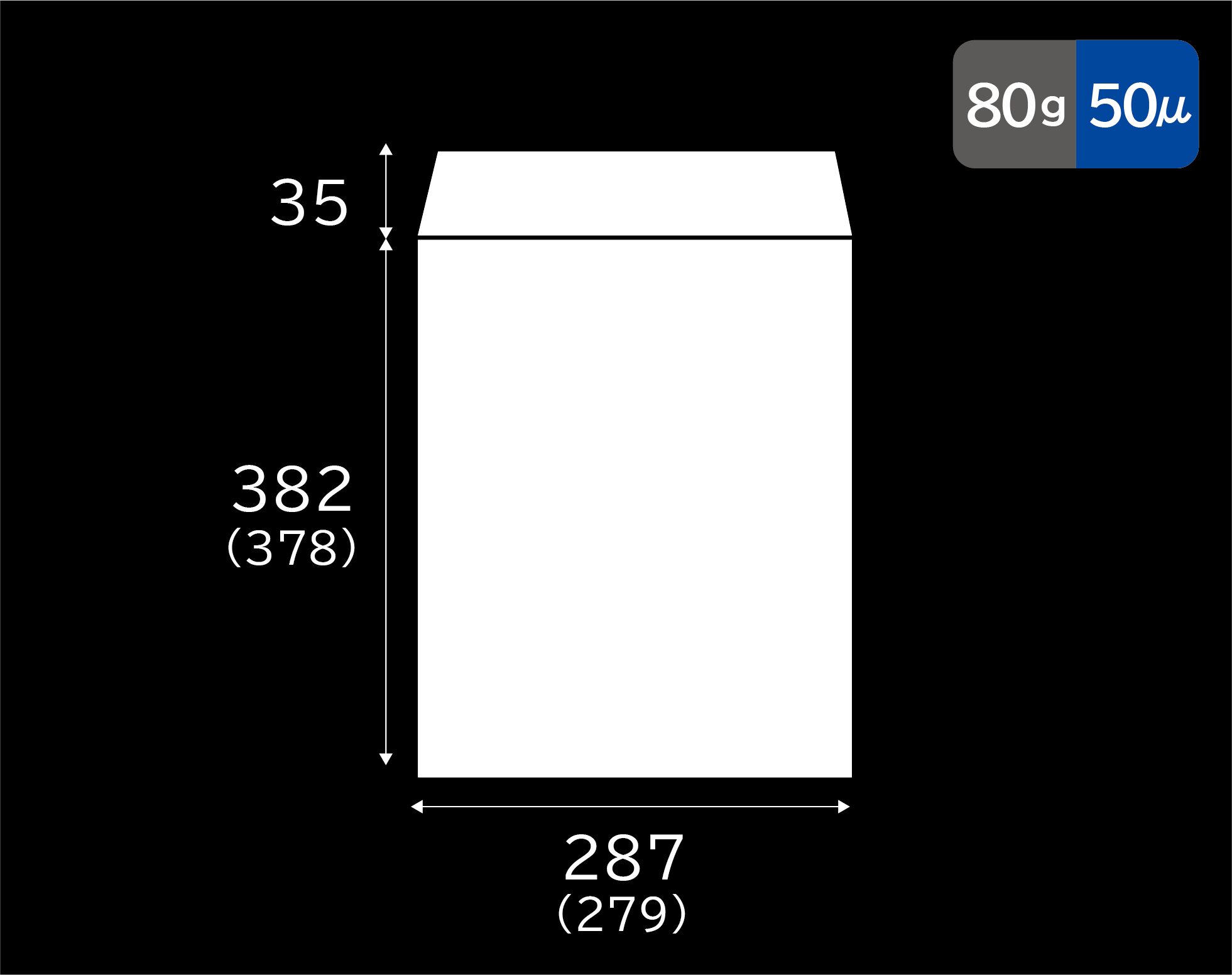 | 角0-80g/50μ | A1151 | K0-PFEC501T(PF-角0) | 角形0号(K0) | 紙(白)/OP | 80/50μ | 287(279) | 382(278) | 35 |