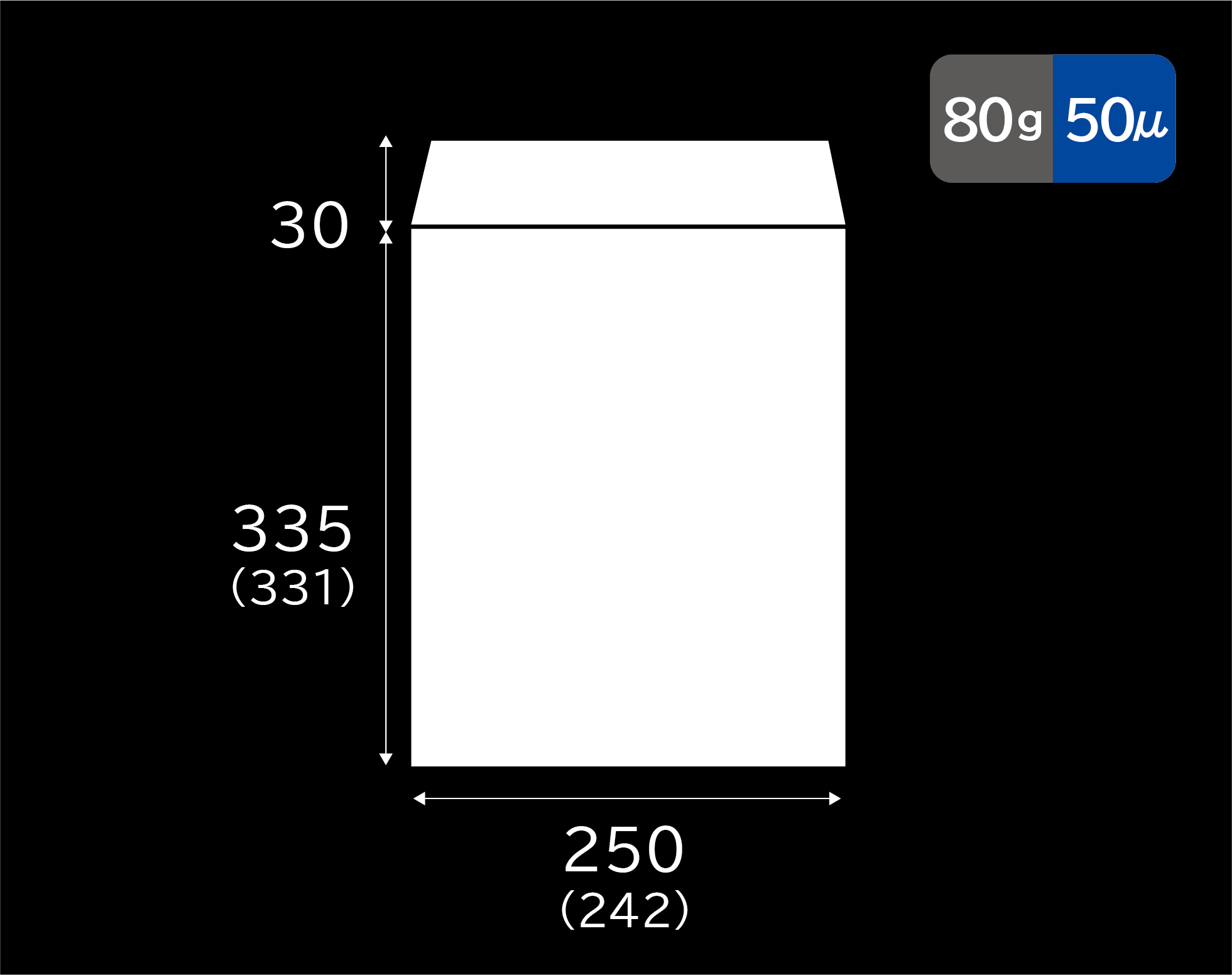 | 角2-80g/50μ | A0957 | K2-PFEC501T(PF-角2) | 角形2号(K2) | 紙(白)/OP | 80/50μ | 250(242) | 335(331) | 30 | |