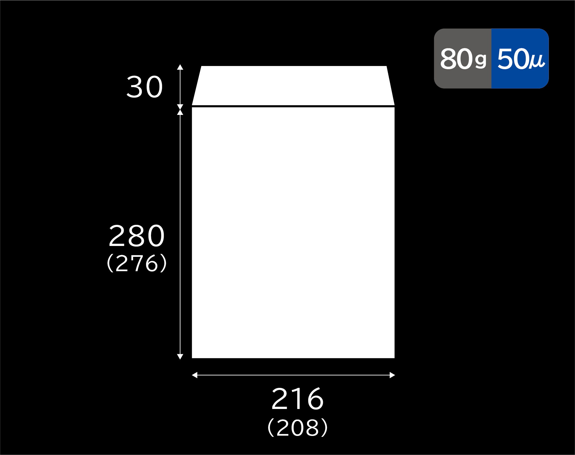 | 角3-80g/50μ | A0656 | K3-PFEC501T | 角形3号(K3) | 紙(白)/OP | 80/50μ | 216(208) | 280(276) | 30 | |