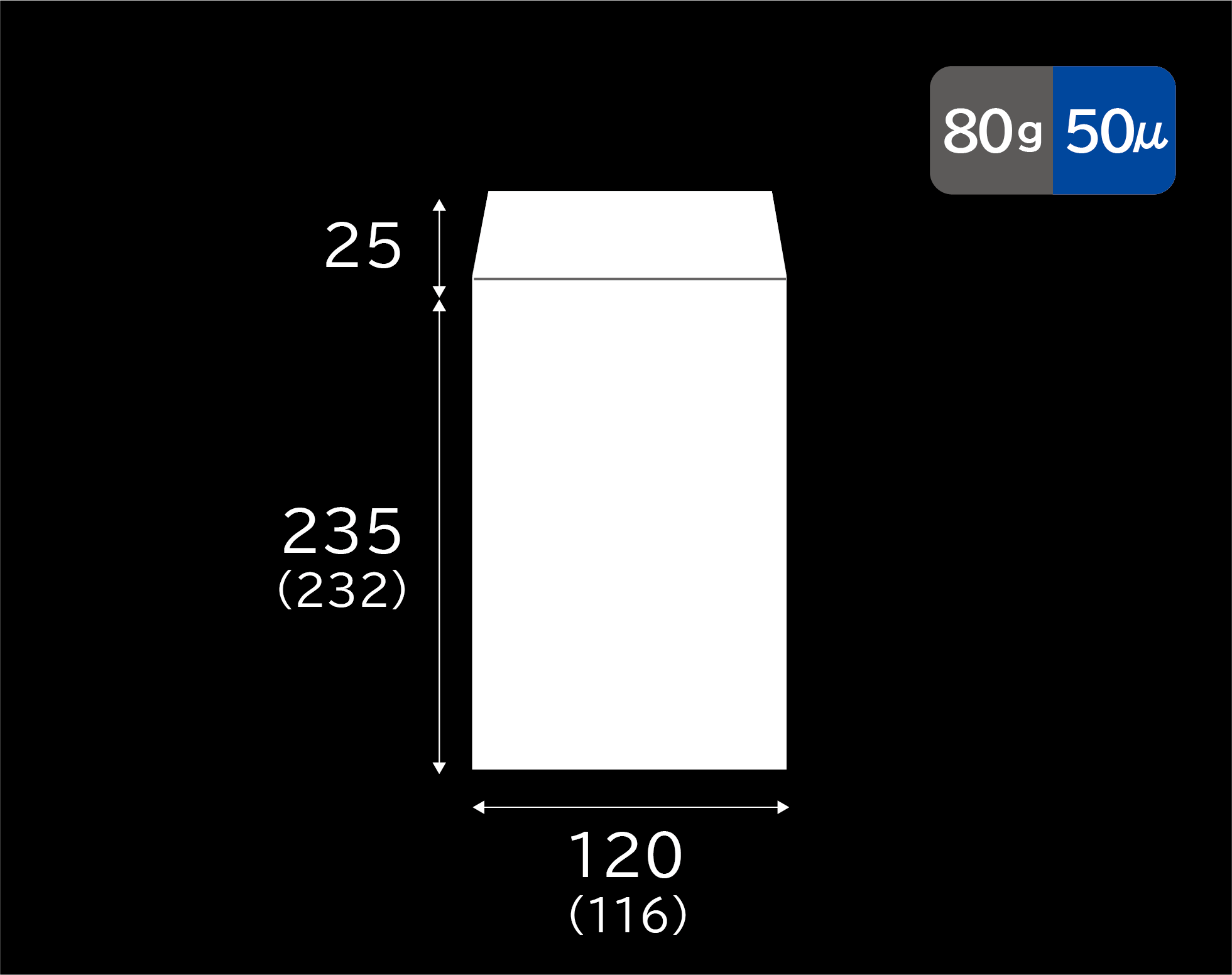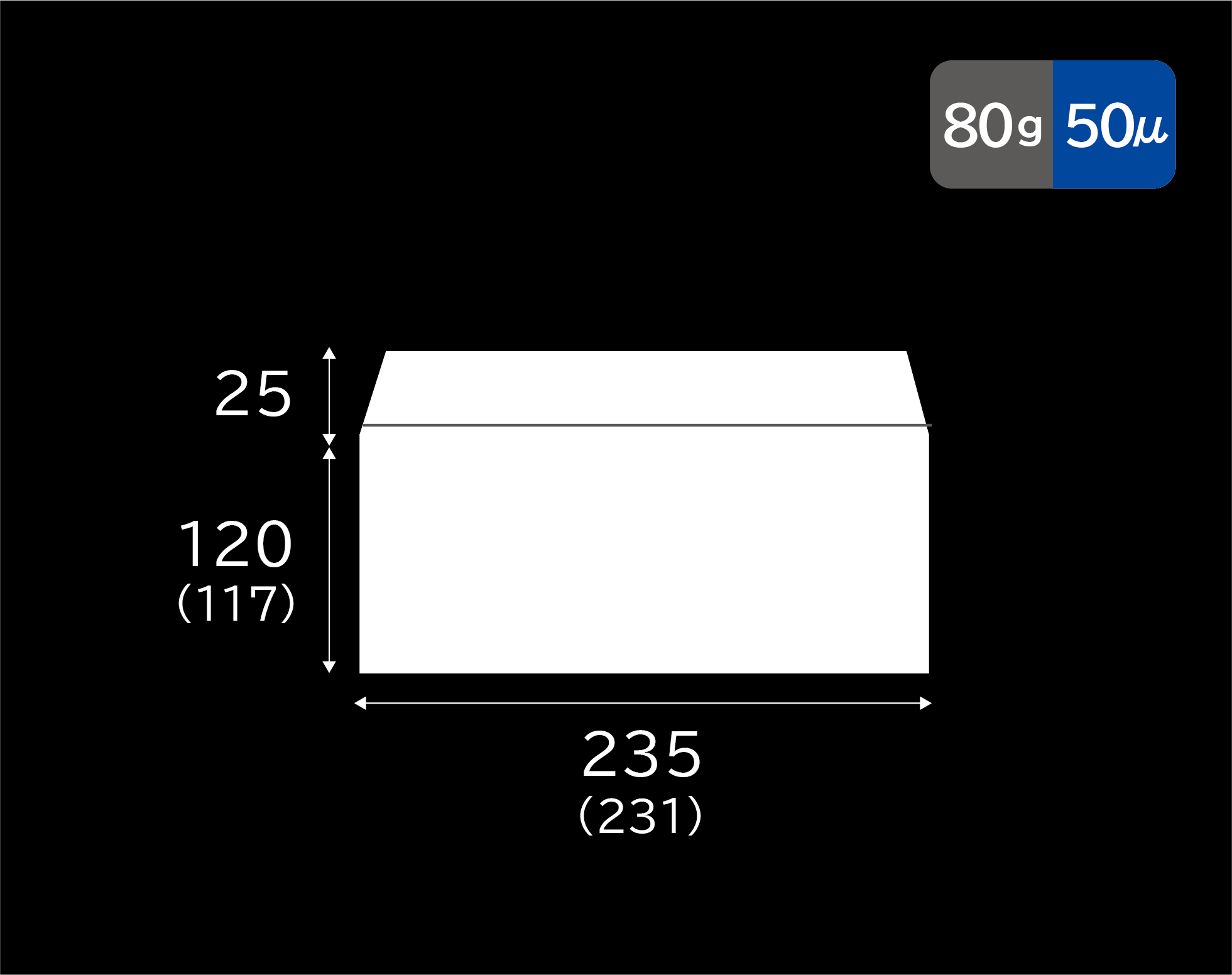 | 長3-80g/50μ | A0272 | N3-PFEC501T(PF-長3W) | 長形3号(N3) | 紙(白)/OP | 80/50μ | 120(116) | 235(232) | 25 | |