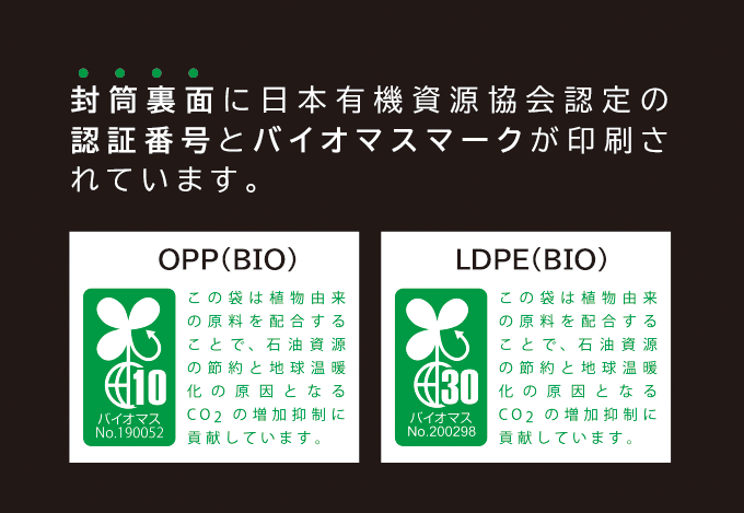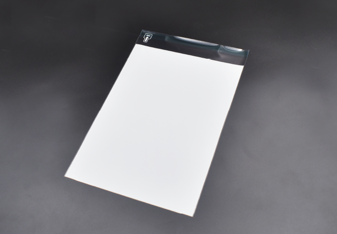 保管袋としても使用可能な表面紙 / 裏面フィルムのオリジナル封筒